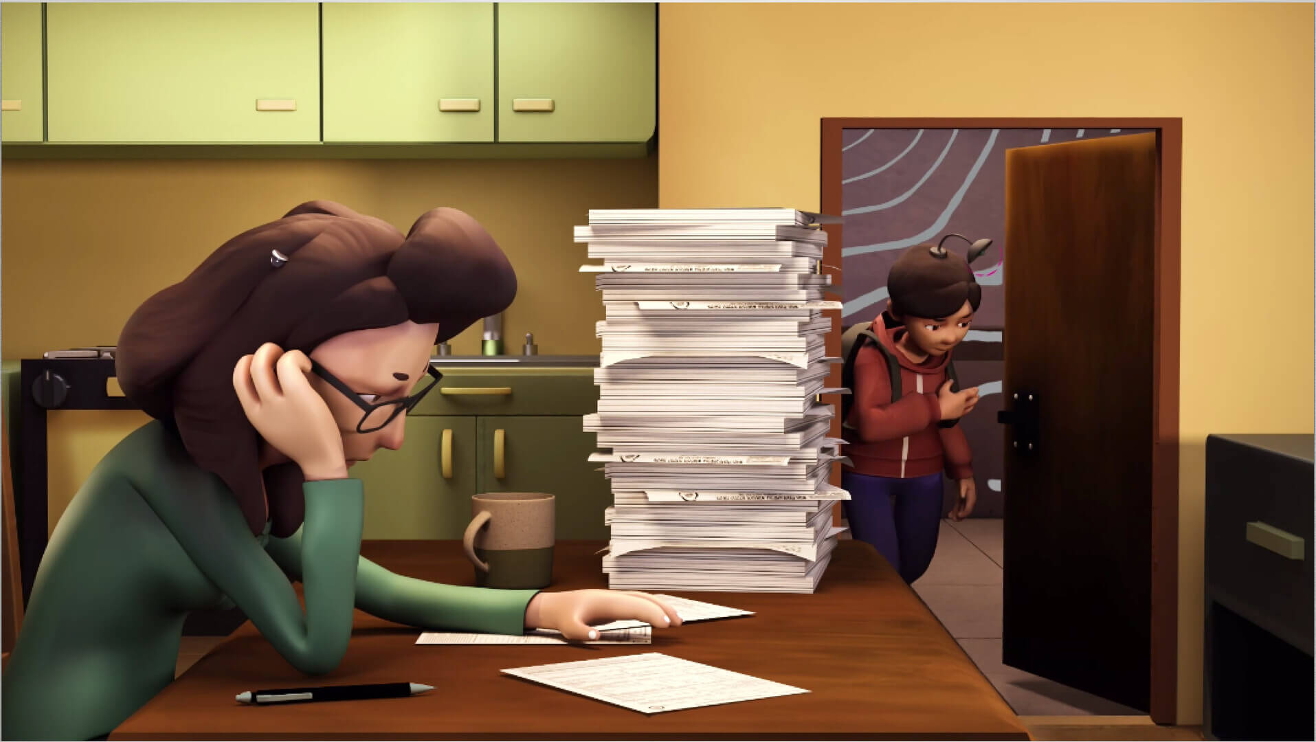 a mother and daughter struggle to understand each other because of the different antennas on their heads. After a difficult day at school, the daughter attempts to pull the mother’s antenna so she could understand her.