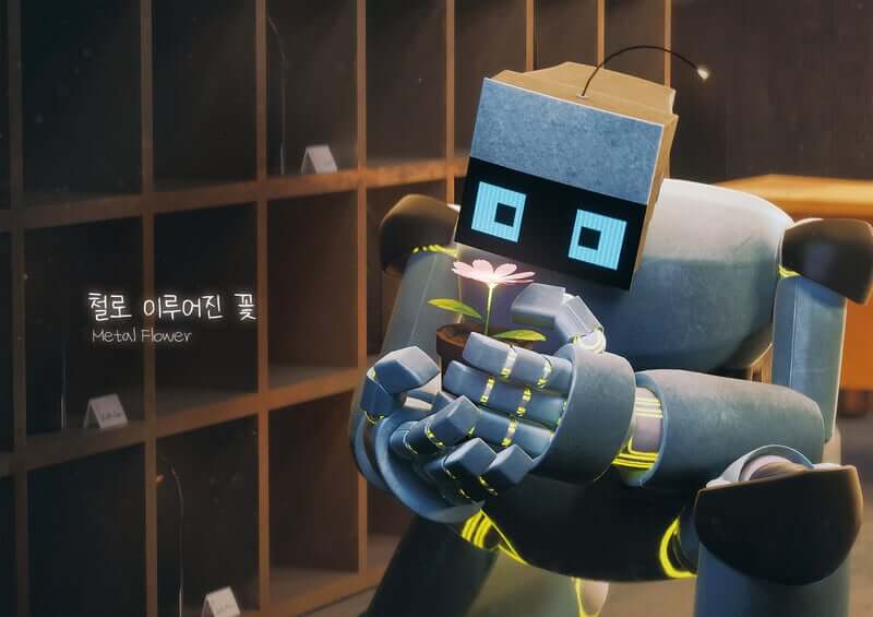 One day, the robot making 'fake flowers' with metal encounters 'a real flower' for the first time. ---------- [AGE-APPROPRIATE] ALL age (Preschool 1-5)