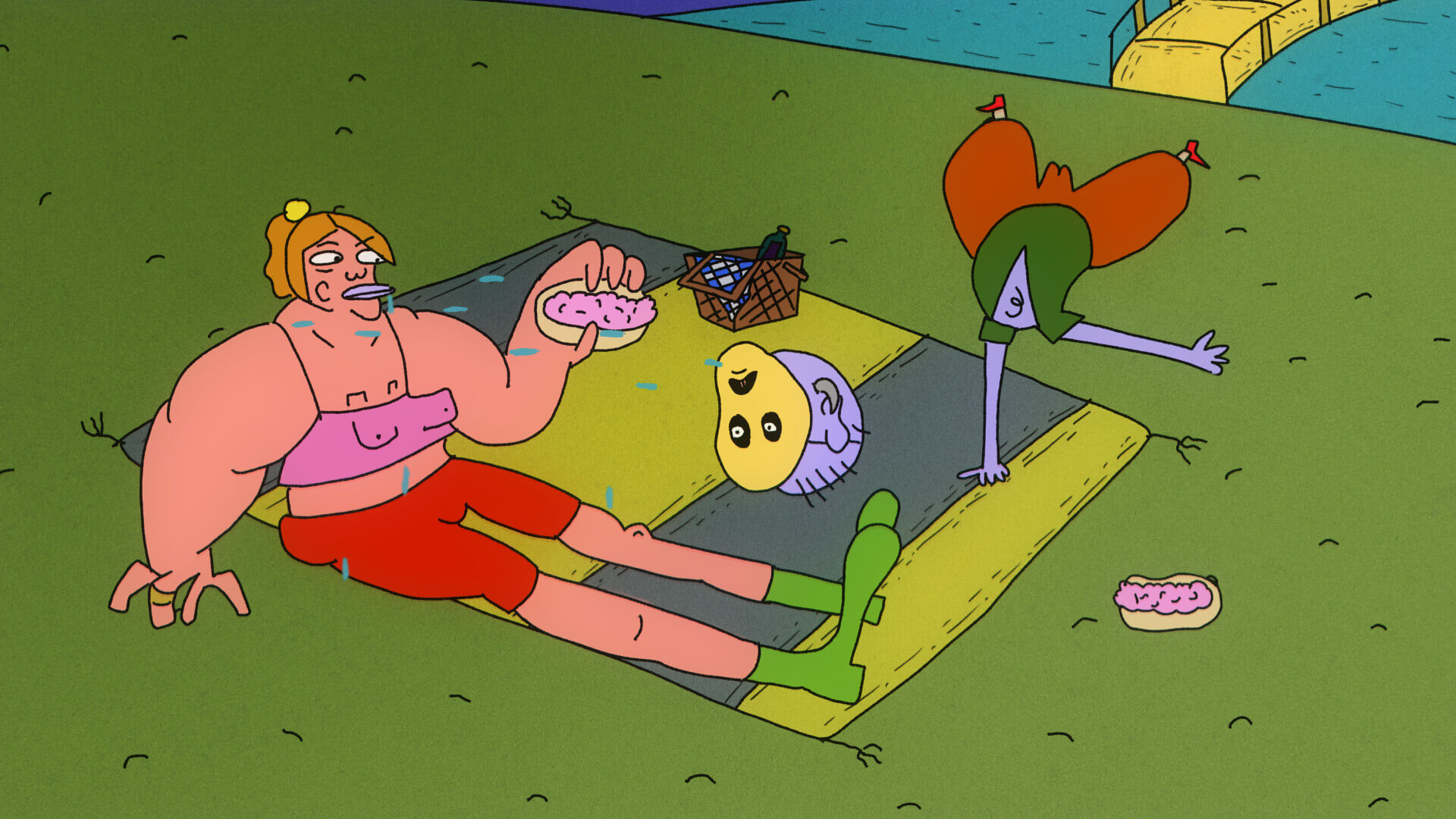 2025Two picnicking pals are enjoying a nice afternoon in the park when a portly bee interrupts the festivities. This unexpected guest causes one of the hungry picnickers to undergo a grotesque transformation and lose all bodily autonomy. But the question remains: will they get to finish their meal?