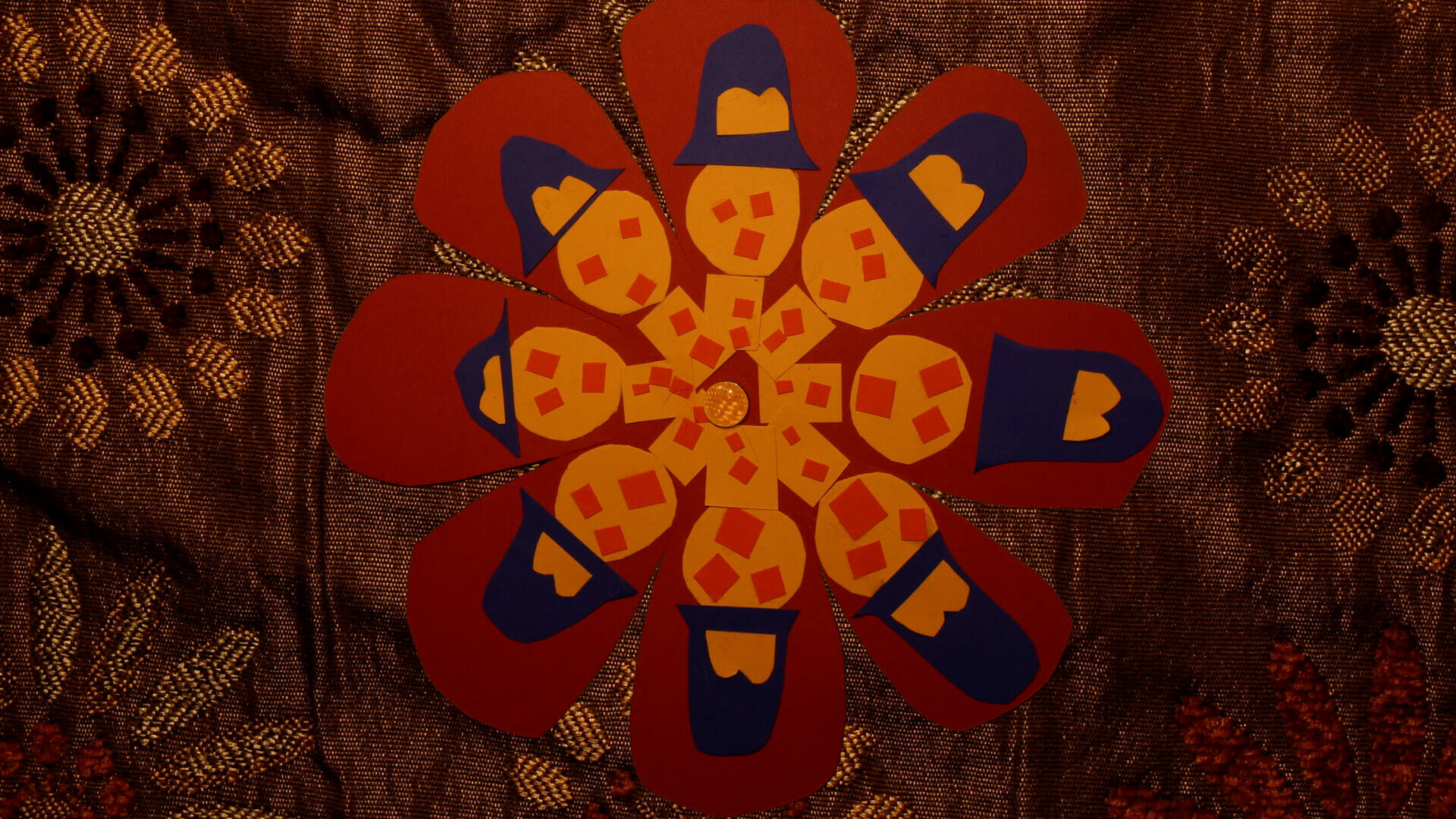 The Phenakistoscope is an animation toy, a disk of pictures that, when spun, presents an animation. A Flower Keester Cop is just like that, but with flower power.